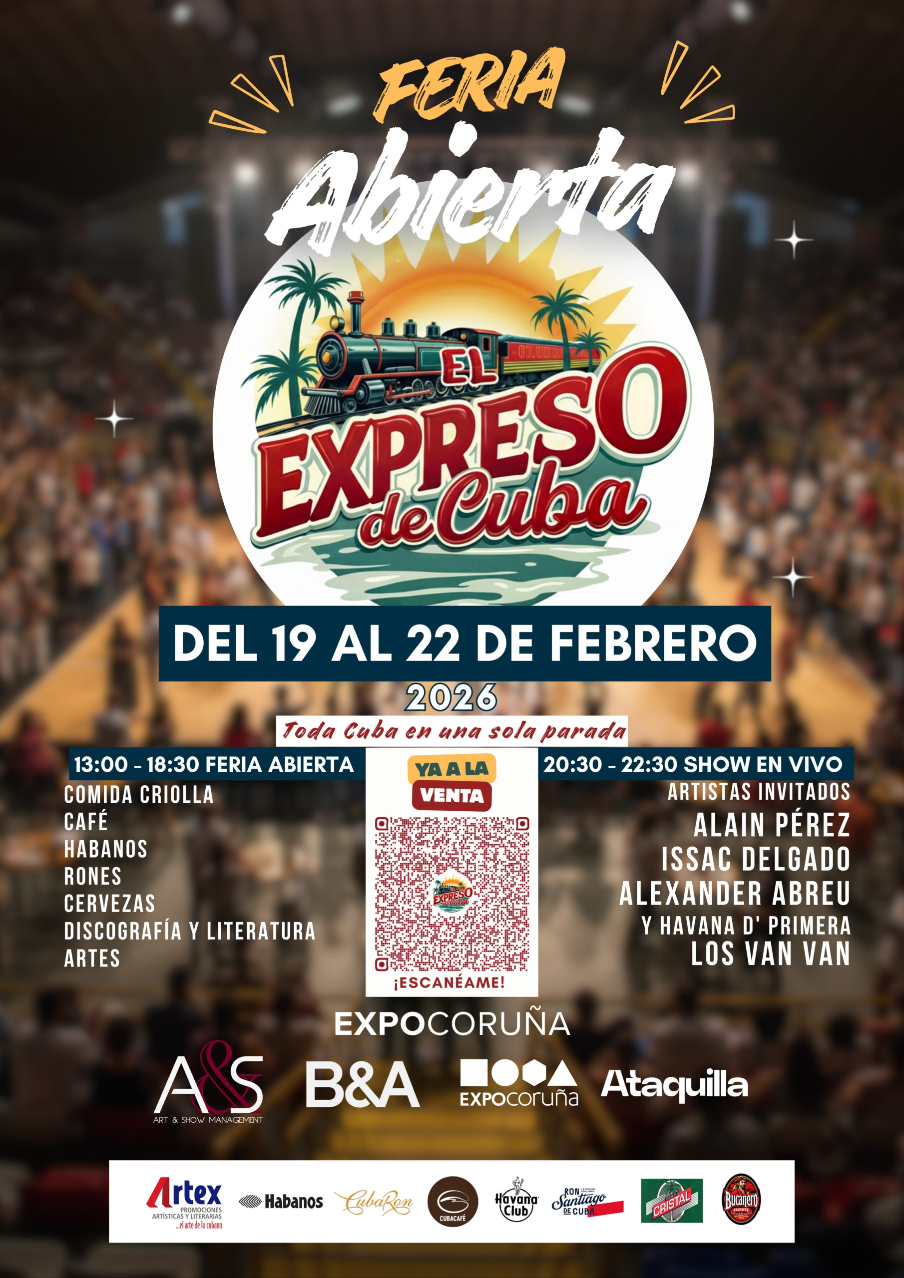 Llega a EXPOCoruña el “El Expreso de Cuba”, un evento concebido como una celebración y homenaje a la música cubana de primer nivel, dirigido especialmente al público contemporáneo y a las personas admiradoras de la cultura cubana en toda su riqueza y diversidad. El Expreso de Cuba propone una experiencia integral que reúne música, gastronomía, bebidas, arte y otras manifestaciones artísticas y comerciales vinculadas a la identidad de Cuba.